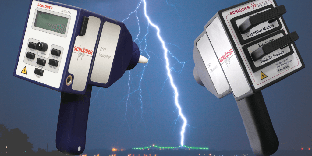 Electronic equipment must have a certain immunity to electrostatic discharge, tested according to the international standard IEC 61000-4-2. The German equipment manufacturer Schlöder has a series of programmable ESD simulators guns, which can be used both on battery and mains: